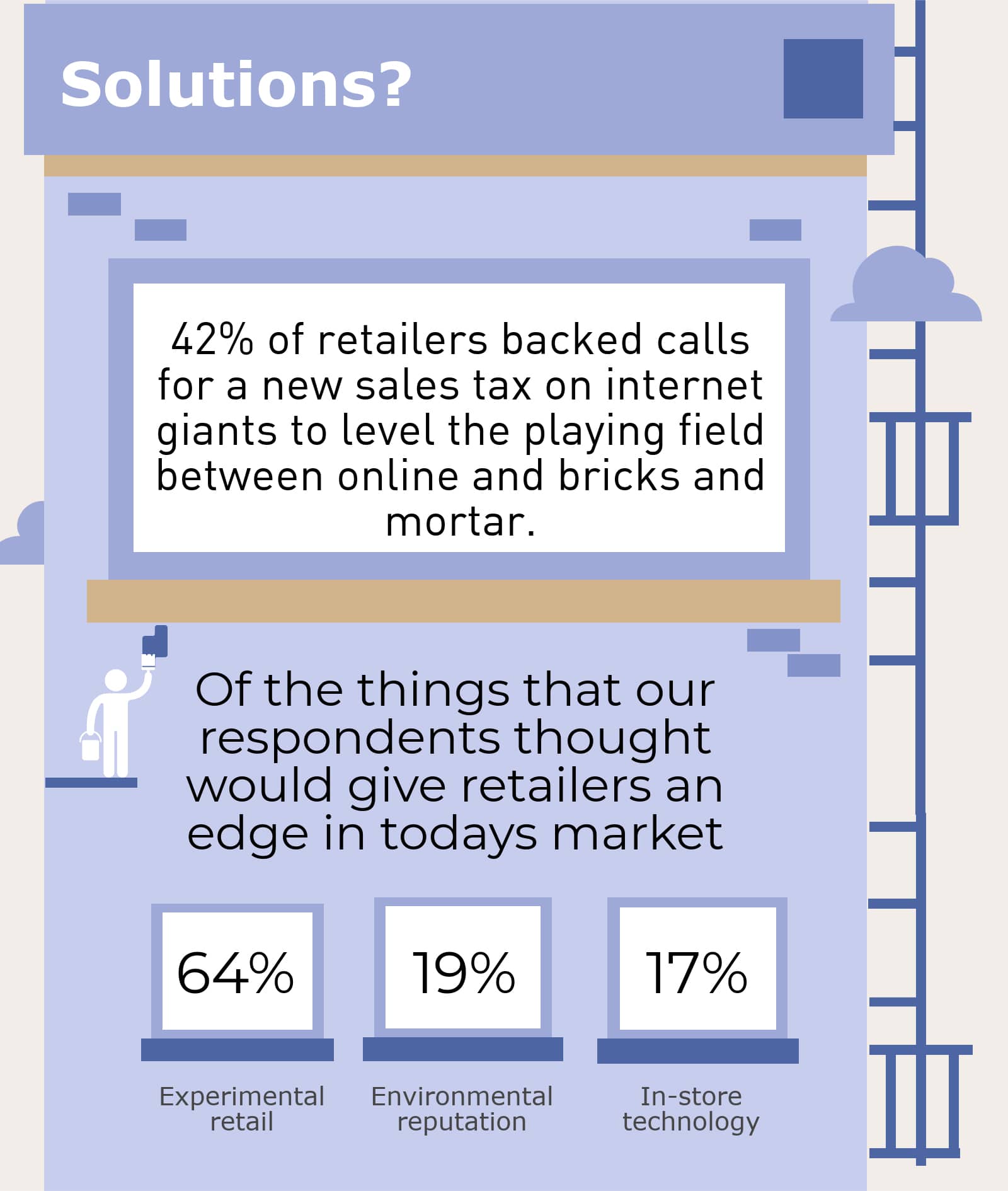 The survey also revealed that 64% retailers believe experiential retail will give them an edge, followed by environmental reputation (19%) and in-store technology (17%).