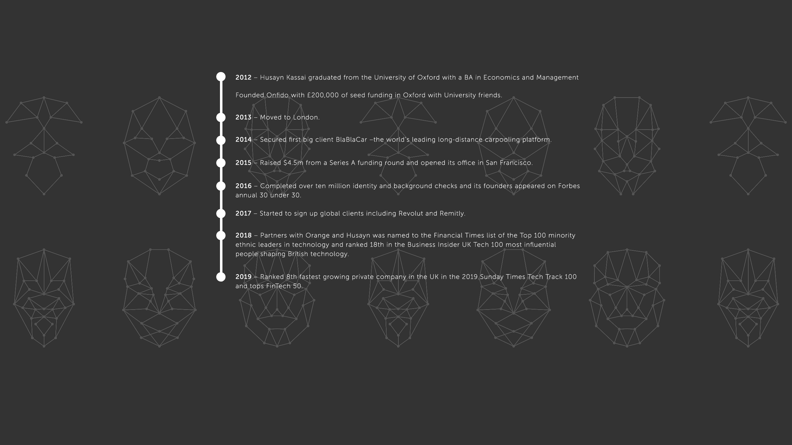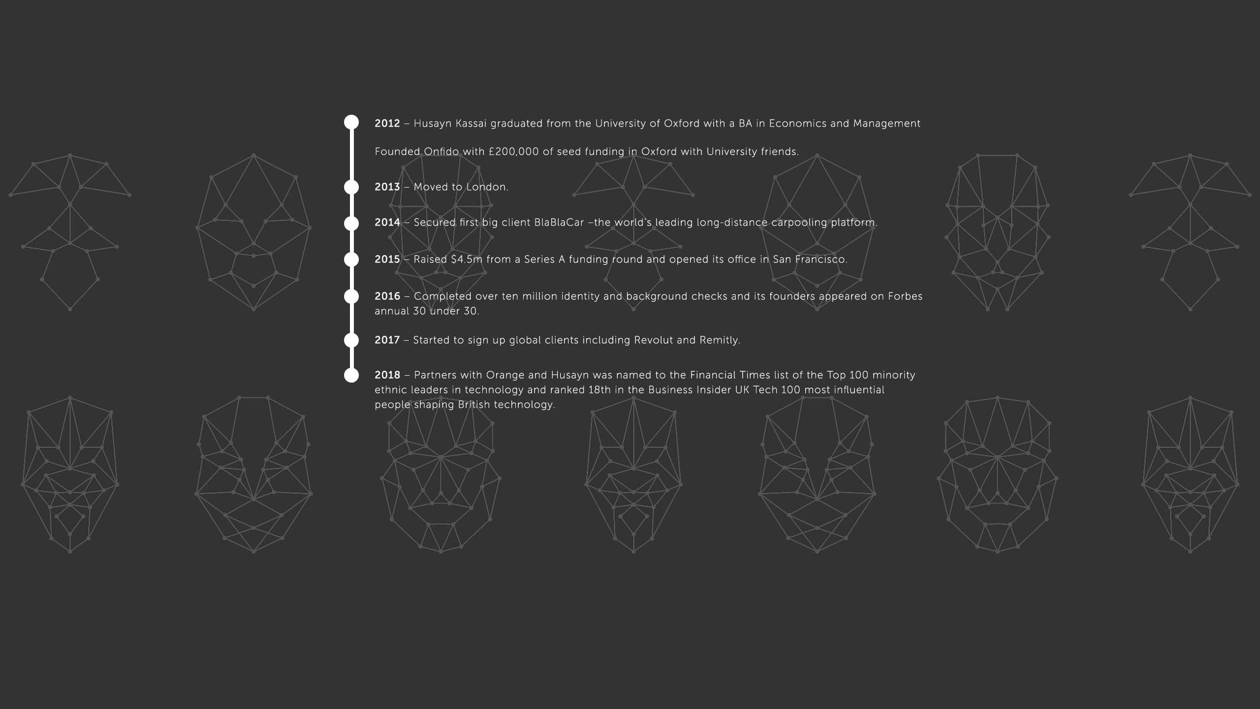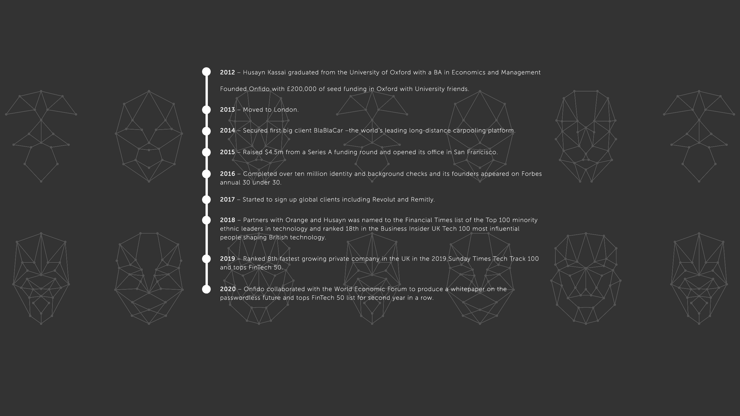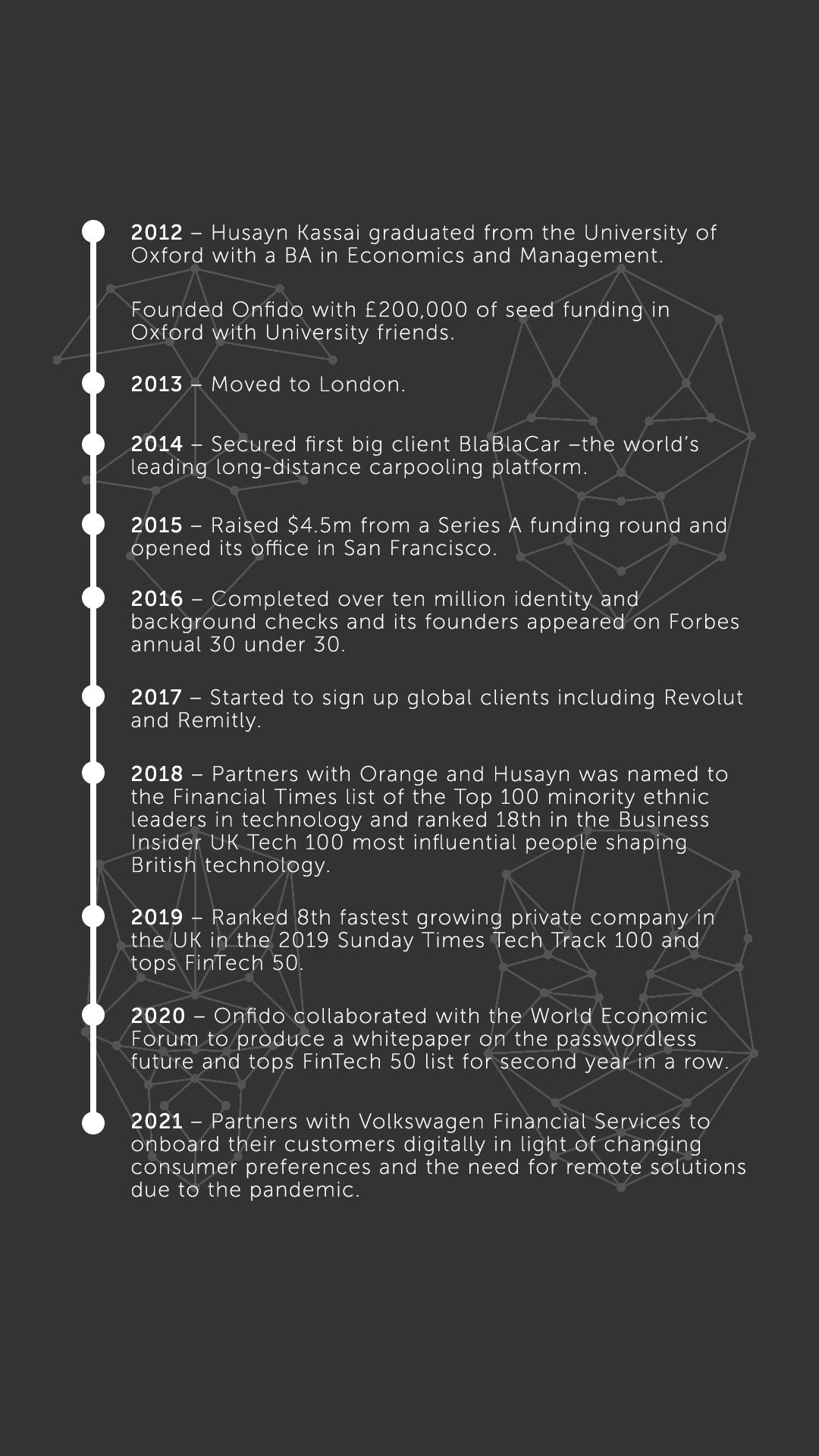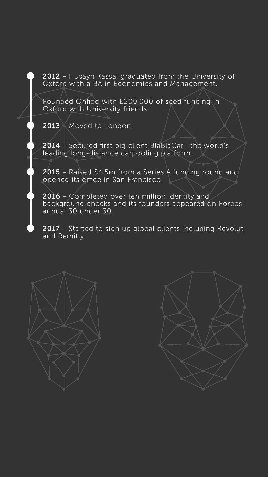 This inspired him to create Onfido whose mission is to facilitate an open worldwide verification entity and empower consumers to own and control their legal identity where they can decide which businesses they want to access their personal data.